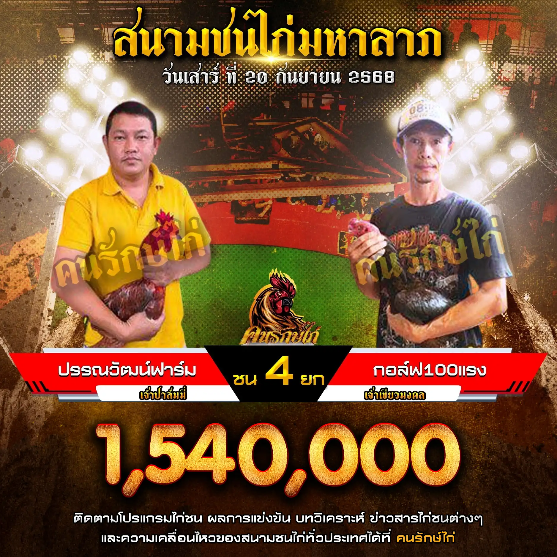 โปรแกรมไก่ชน 20 กันยายน 2568